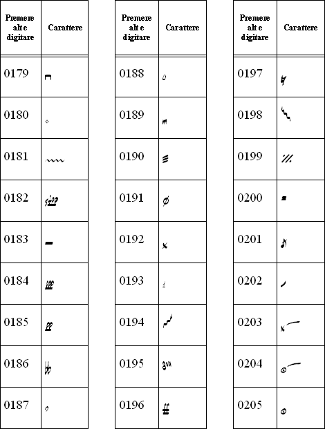 Caratteri del font Jazz