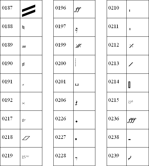 Il font Engraver Text compare nelle tabelle riportate qui di seguito. I caratteri del font Engraver Text corrispondono ai caratteri di testo standardi utilizzati per