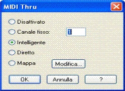 Vi è una situazione particolare in cui la modulation wheel richiede la vostra attenzione: se utilizzate una tastiera MIDI per l'inserimento della musica (ad esempio con lo Strumento Inserimento semplice) e avete impostato l'opzione Intelligente all'interno della finestra di dialogo MIDI Thru: