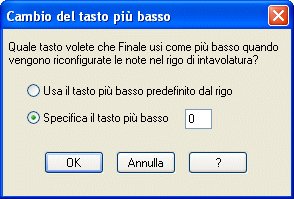 Utilizzate questa finestra di dialogo per variare, in una determinata region, il tasto più basso impostato per il rigo di intavolatura.