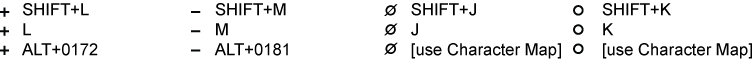 Note. Non ci sono equivalenti da tastiera per il carattere semidiminuito nella riga inferiore della numerazione. Per inserire questo simbolo dovete copiarlo dalla Mappa caratteri.