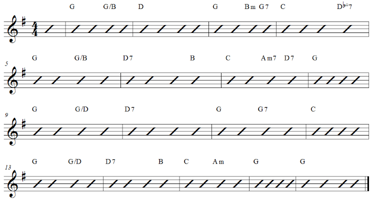 Per completare questo passaggio dovete quindi scrivere: G [spazio] [spazio] Bm [spazio] G7 [spazio] C
