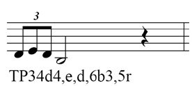 Inserimento di una terzina di crome. Il primo numero dopo TP indica il tipo di gruppo irregolare, mentre il secondo indica la durata delle note.