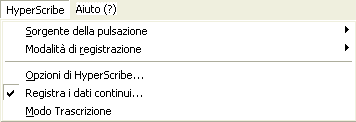 Il sottomenu Modalità di registrazione contiene una serie di comandi per registrare una performance tanto in doppio che in singolo sistema di righi, e il comando di registrazione multitraccia, che vi permette di registrare segnali simultanei da canali diversi in righi multipli o livelli diversi dei righi.