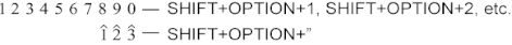 Il font Numerics dispone di caratteri ad ampiezza zero con equivalenti da tastiera Per inserire questi caratteri è sufficiente digitare il numero in combinazione con il tasto SHIFT