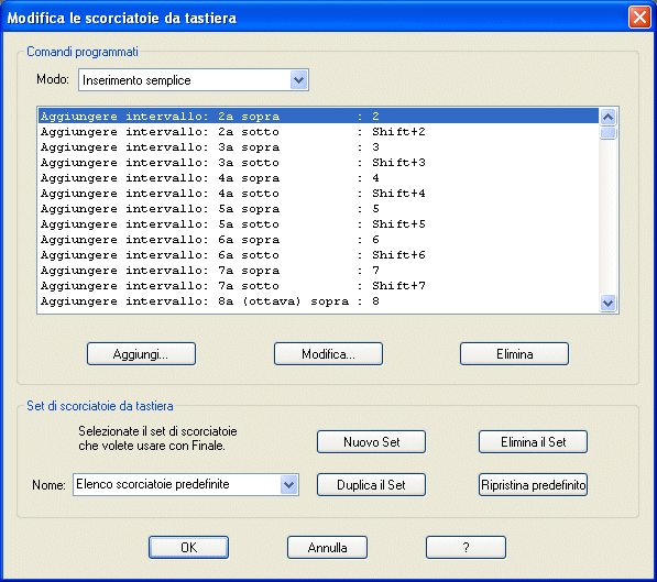 In questa finestra di dialogo troverete gli strumenti per modificare i tasti di scelta rapida assegnati ai vari comandi dello Strumento Inserimento semplice e aggiungerne di nuovi.
