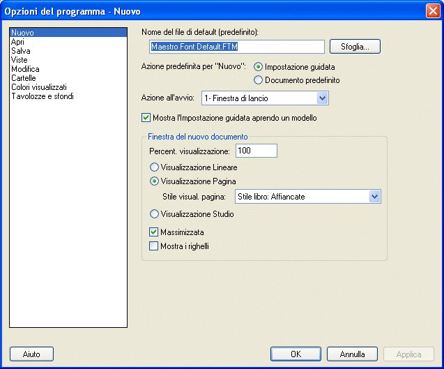 Dal Menu Modifica selezionate Opzioni del programma, si aprirà la finestra di dialogo Opzioni del programma. Nella parte sinistra della finestra di dialogo selezionate la voce Nuovo. Apparirà la relativa maschera di opzioni della parte destra della finestra di dialogo.