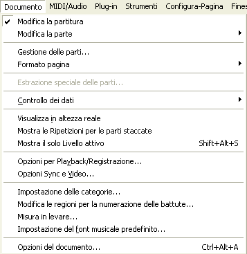 Il Menu Documento è uno dei Menu fissi di Finale.