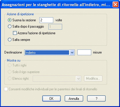 Finestra di dialogo Assegnazioni per le stanghette di ritornello all’indietro