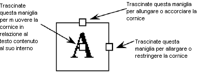 Notate che a video appaiono tre maniglie quadrate. Trascinando queste maniglie potete cambiare la forma, le dimensioni e la posizione della cornice, come si vede nell'immagine sopra riprodotta.