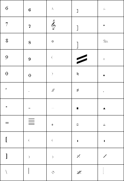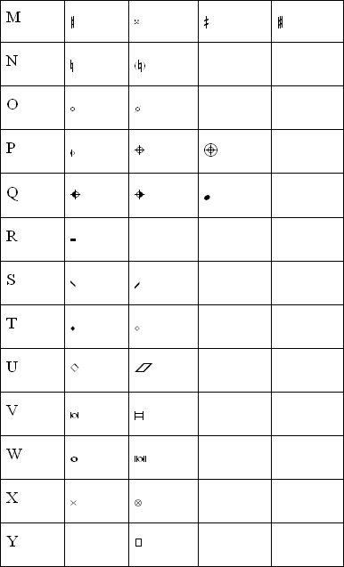 Il font Engraver Text compare nelle tabelle riportate qui di seguito. I caratteri del font Engraver Text corrispondono ai caratteri di testo standardi utilizzati per
