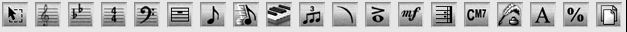 Ciascun riquadro di questa Tavolozza contiene uno simbolo che rappresenta uno specifico Strumento. Quando passate con il puntatore del mouse su uno di questi Strumenti compare una breve descrizione scritta delle sue funzioni essenziali in Finale. Potete inoltre osservare la Tavolozza Inserimento Semplice