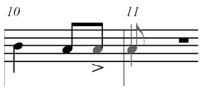 - Cliccate sulla prima nota di battuta 11. Il Si verrà selezionato.