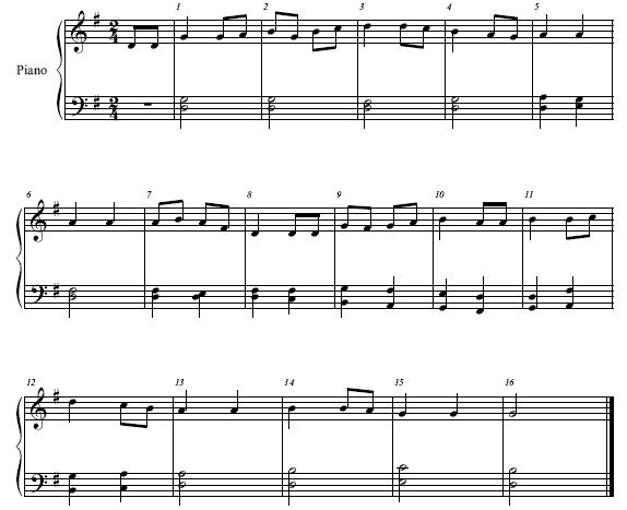 - Premete i tasti (B, B, C, D, C, B) per correggere le note delle battute 11 e 12 nelle note Si, Si, Do, Re, Do e Si (dovete usare il tasto freccia a destra per spostarvi di nota in nota).