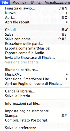 Il menu File è uno dei menu fissi di Finale.