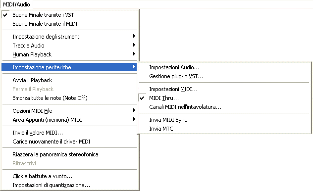 Se la vostra partitura non prevede il pianoforte, è possibile caricare lo strumento in un rigo inutilizzato ed utilizzarlo per l'ascolto delle sole note inserite dopo aver selezionato l'opzione Canale fisso nella finestra di dialogo MIDI Thru.