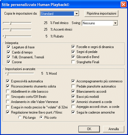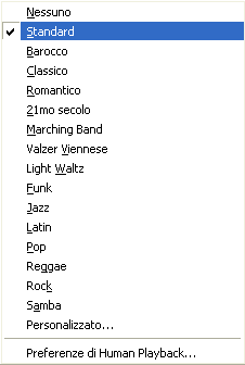 Benché i vari stili predefiniti di Human Playback (Barocco, Classico, Jazz, Rock, etc.) producano eccellenti risultati, potete tuttavia creare voi stessi degli stili personalizzati, configurati su misura per la vostra partitura.