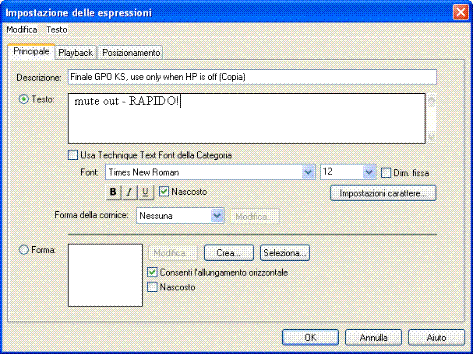 Questa impostazione è necessaria soltanto per le espressioni come “pizz,” “arco,” ecc. che Human Playback utilizza come keyswitch durtante il playback con la GPO. Le altre espressioni, come le indicazioni di dinamica, di tempo e così via., non utilizzano keyswitch e, di conseguenza non è necessario che selezionate l’opzione Nessuno nel menu Tipo.