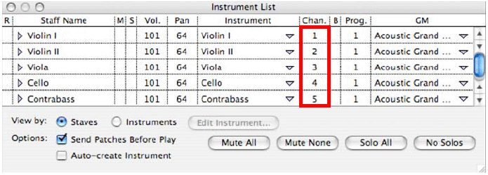 Una volta assegnato ad ogni strumento il canale appropriato potete configurare la vostra partitura per il playback con gli strumenti della GPO:
