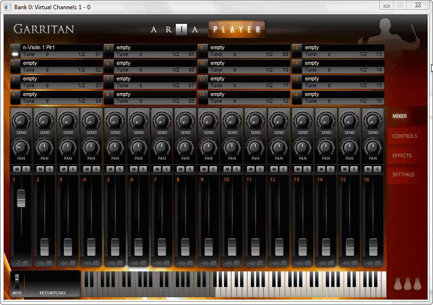Abbiamo caricato con successo il primo strumento della partitura sul canale 1. Il Player Aria dovrebbe apparire così: