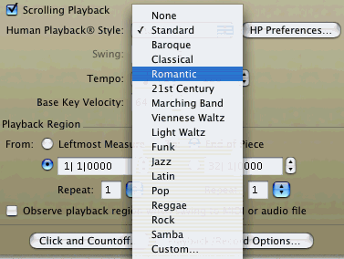- Scegliete lo Stile di Human Playback più appropriato alla vostra partitura: