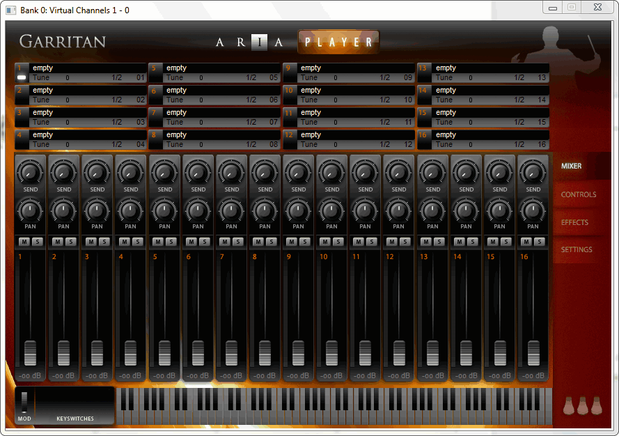- Si aprirà la prima istanza del Player Aria, all'interno del quale potrete caricare gli strumenti che volete utilizzare per il playback della partitura.