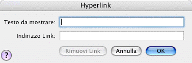 Questa finestra di dialogo vi permette di impostare testo e URL per creare un hyperlink.