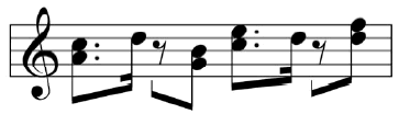 - Stile raggruppamento: Raggruppamenti tutti orizzontali. Nella notazione standard, i raggruppamenti degli ottavi (e valori inferiori) hanno una angolazione che corrisponde al profilo melodico del gruppo. Potreste però voler utilizzare delle linee “piatte” orizzontali, ad esempio, per minimizzare la scalettatura in caso di stampa su stampanti a bassa risoluzione. Selezionate questa opzione per avere esclusivamente delle linee di raggruppamento orizzontali.