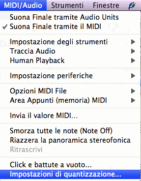 Il menu MIDI/Audio è uno dei menu fissi di Finale.