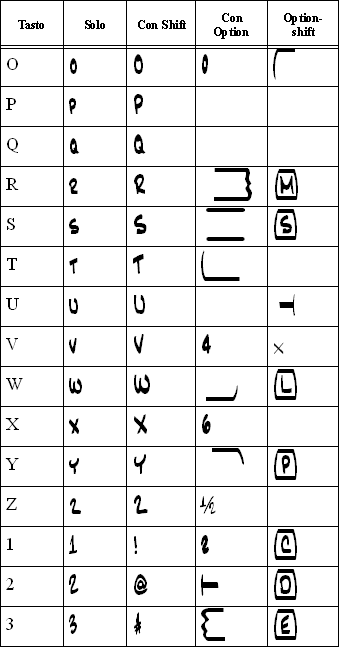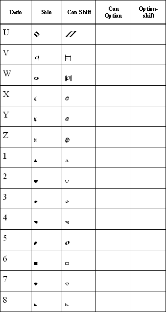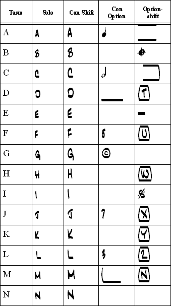 Caratteri del font Jazz