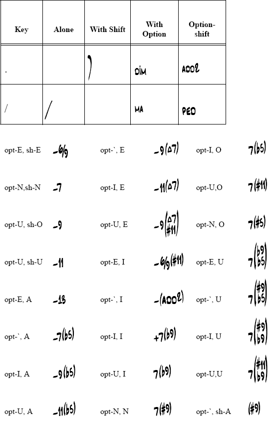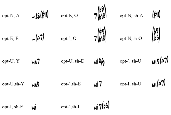 Caratteri del font Jazz Chord