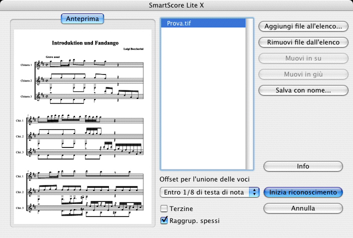 - Terzine. Selezionate questa opzione se volete che SmartScore Lite riconosca le terzine e le inserisca nella trascrizione del documento.