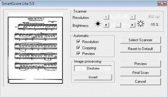 these settings to tell SmartScore Lite to automatically configure resolution,