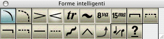 Questa tavolozza spostabile, ridimensionabile, deformabile, contiene icone che rappresentano legature, forcelle di crescendo, quadre orizzontali, linee tratteggiate e continue, e altre Forme ‘Intelligenti’ auto-dimensionanti.