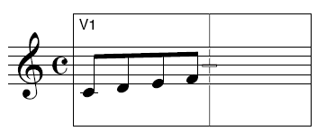 - Ogni volta che si modifica la durata di una nota (o si inserisce una nota nuova) la barra di inserimento si sposta verso destra, pronta per inserire la nota o pausa seguente (o per modificare il valore di una nota preesistente).