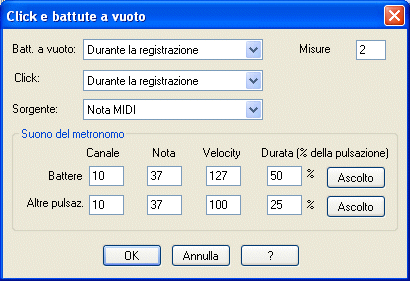Nel campo di testo Misure, digitate il numero di battute a vuoto che volete ascoltare prima di iniziare la registrazione. L’impostazione predefinita è 2.