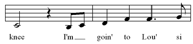 I’m [spazio] goin’ to Lou’-si-a-na, my [spazio] true love for to see. [spazio]