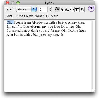 - Nella finestra del testo cantato, cliccate sul pulsante