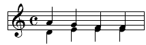 Si dovrà fare in modo da spostare una delle voci, per evitarne la sovrapposizione. La soluzione consiste nel trascinare semplicemente ambo le note da un lato quando si sta editando con lo Strumento Inserimento rapido. Le note, durante l’editing, possono essere trascinate sia orizzontalmente, sia verticalmente. Premendo il tasto d mentre trascinate, il puntatore del mouse potrà spostarsi solo perfettamente in orizzontale, o perfettamente in verticale, senza movimenti diagonali.