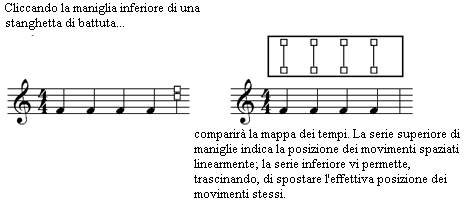 Usando Spaziatura della musica, si attribuisce ad ogni battuta su cui si agisce, una mappa. Una mappa della battuta è costituita da alcune maniglie che consentono di riposizionare i movimenti della battuta stessa e le note che su quei movimenti vanno a cadere. Tutto ciò contemporaneamente per tutti i righi di un’accollatura.
