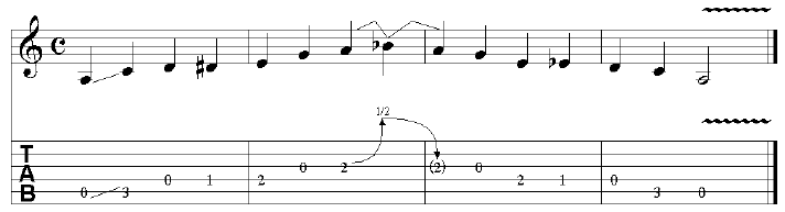 - Fate doppio click sulla nota La sul terzo tempo della seconda misura. Ora vedrete apparire un bending che si estende dal La al Si bemolle.