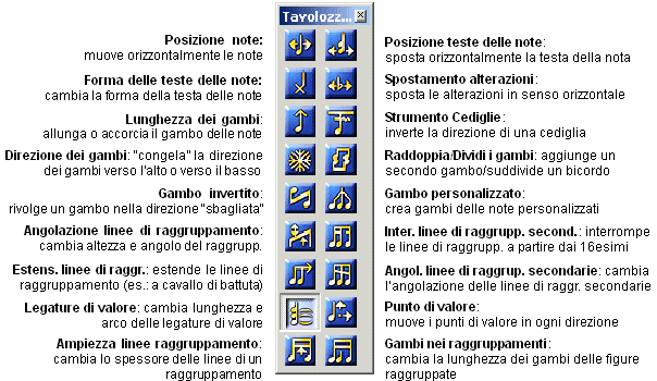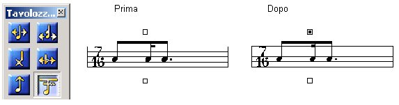 permette di regolare la lunghezza dei gambi delle note che si trovano in un raggruppamento. Per maggiori informazioni si veda la documentazione alla voce Strumenti Speciali.