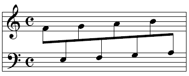 Queste maniglie permettono anche di dividere le gambe delle note in un bicordo, per ottenere l’effetto di una voce separata, tipico nei corali, come in questo caso: