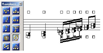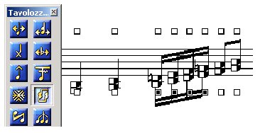 Gli Strumenti Speciali permettono un controllo completo e dettagliato di spaziature, raggruppamenti, legature, punti e gambi delle note.