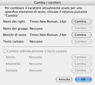 - Cambia individualmente il testo cantato. Selezionate questa opzione se volete cambiare individualmente il font per le strofe, ritornelli o sezioni.