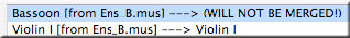 Dal menu File scegliete Riunione partiture. Apparirà la Finestra di dialogo Riunione partitura (Score Merger). Cliccate su Riunisci questi file in un unico file e selezionate l’opzione Modifica la giunzione degli strumenti fra i file. Cliccate su Aggiungi, selezionate i file da riunire e cliccate su Riunisci. Quando apparirà la Finestra di dialogo Giunzione strumento per [nome file] selezionate lo strumento sul quale volete intervenire e cliccate su Modifica la linea selezionata. Apparirà la finestra di dialogo Scegliere giunzione per [nome strumento].