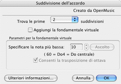 - Aggiungi la fondamentale virtuale. Selezionate l’opzione per aggiungere un rigo contenente la fondamentale virtuale sotto a ciascun rigo di subset. Per la definizione di Fondamentale virtuale, si veda il plug-in Generatore di fondamentale virtuale.