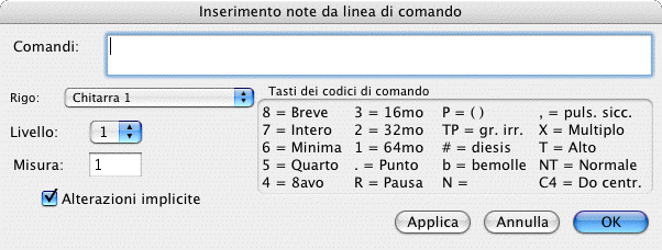 Il plug-in Linea di comando vi consente di inserire velocemente delle note digitando una specifica stringa di comando.