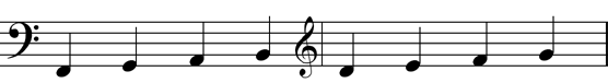 Quello sopra è un esempio su come sia possibile inserire delle note in altre chiavi considerando l’altezza come se fossimo in chiave di violino.