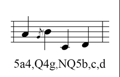 Inserimento di una nota di abbellimento. Ricordatevi di usare il comando NQ per tornare all’inserimento normale delle note.